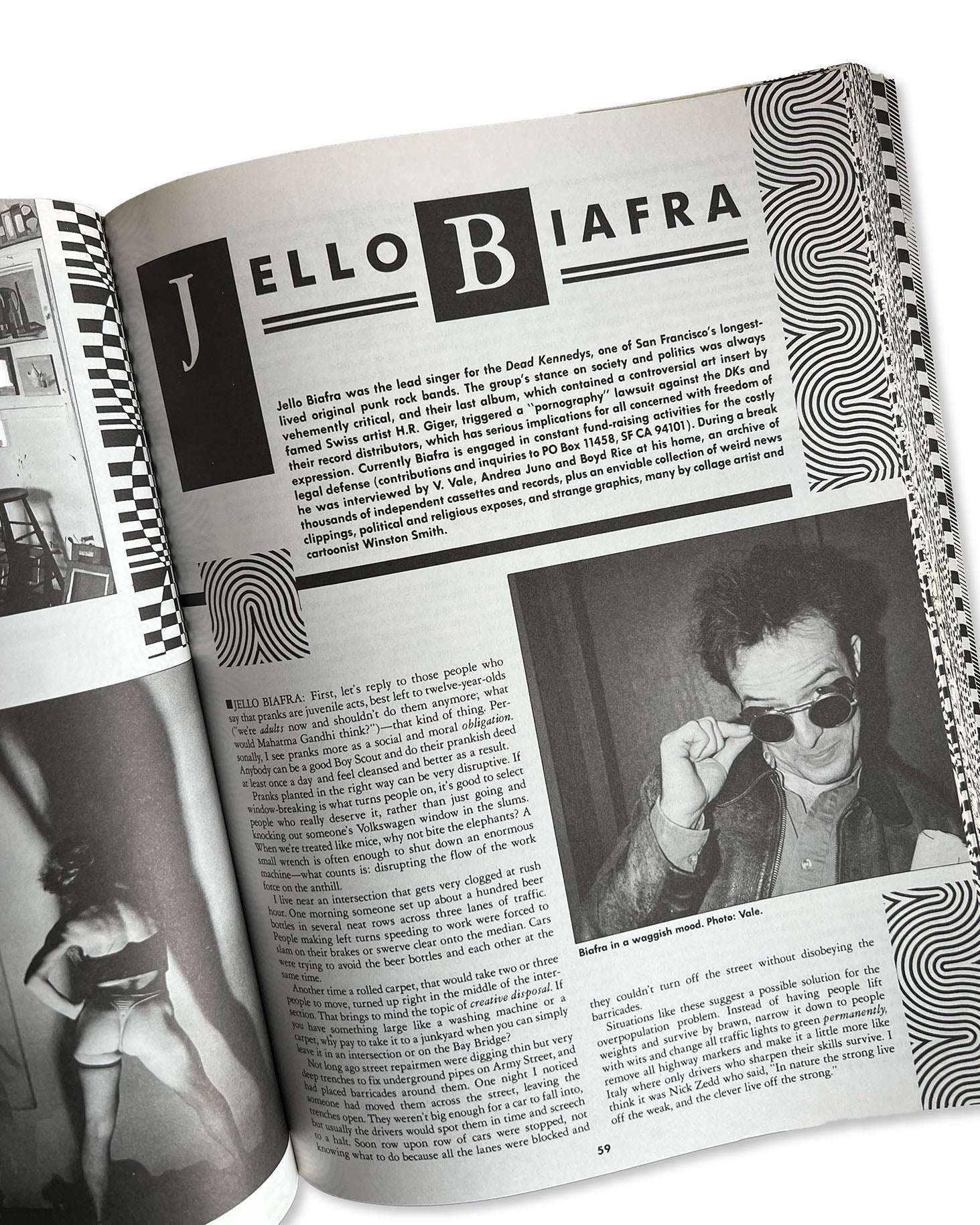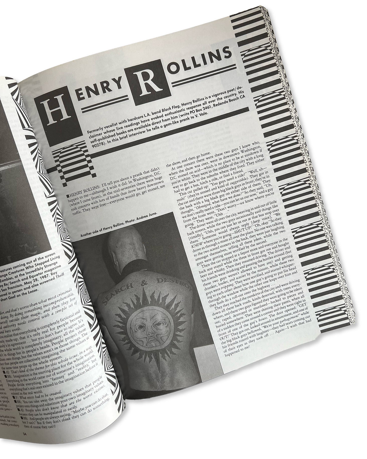 Vale has been doing counterculture publishing since 1977, when he founded the Punk tabloid, Search & Destroy, San Francisco’s first. It was published at City Lights Bookstore, where V. Vale worked, and was funded by $100 each from Lawrence Ferlinghetti and Allen Ginsberg. Then in 1980, V. Vale launched RE/SEARCH, which is best known for its impact on the total world of underground culture.