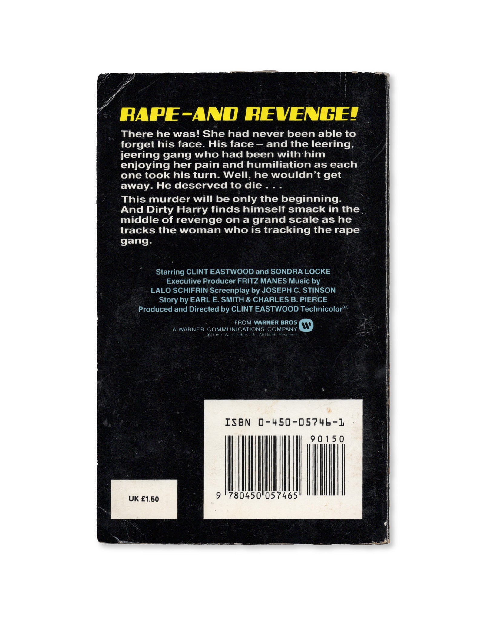 Here's a lovely copy of Joseph C. Stinson's novelisation of the fourth film in the Dirty Harry series. Based on the characters created by Harry Julien Fink, Rita M. Fink and Dean Reisner.